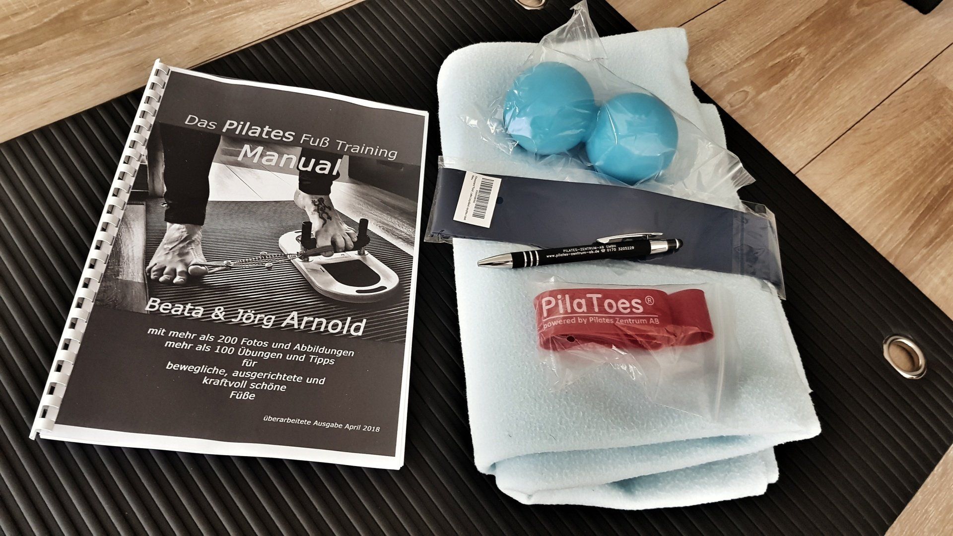 - own PilaToes ® Foot training set consisting of a double massage ball and a latex band loop